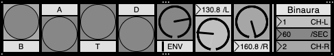 DOWNLOAD [1.1-1] - Binaura is a dual MIDI frequency generator based on binaural beats's concept. You have four brain-wave’s range possibility (Beta, Alpha, Theta and Delta) and one envelope (like ADSR) generator connected to Accent and Length control. You can play it via external MIDI instruments or by another pDd's modules (like Passi) and via MIDI-OUT, other external instruments or other pDd's modules (like Retrò). You can modulated separately the two parameters of Frequency with the (e.g.) Onde's module or via external audio source. |