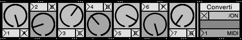 DOWNLOAD [1.1-1] - Converti is a MIDI Control Change converter to a expression signal. It is designed to be used with a part of analog-to-digital system (like Doepfer A-192 CVM16: CV-to-MIDI Interface) or similar. With this module you can manage MIDI 'CC' events for control all pDd_Modules. You can modulated separately any Level with the (e.g.) Onde's module or via external audio source. |