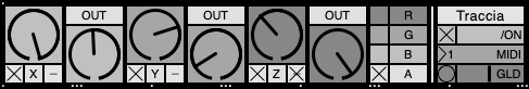DOWNLOAD [1.1-0] - Traccia is a module that allows you to detect the movement from your video stream with the (e.g.) Camera in the X, Y and Z axis by five selectable color filters: Grey, Red, Green, Blue or Alpha. This is good to control the expression of other audio modules or to play an external MIDI instruments. |
